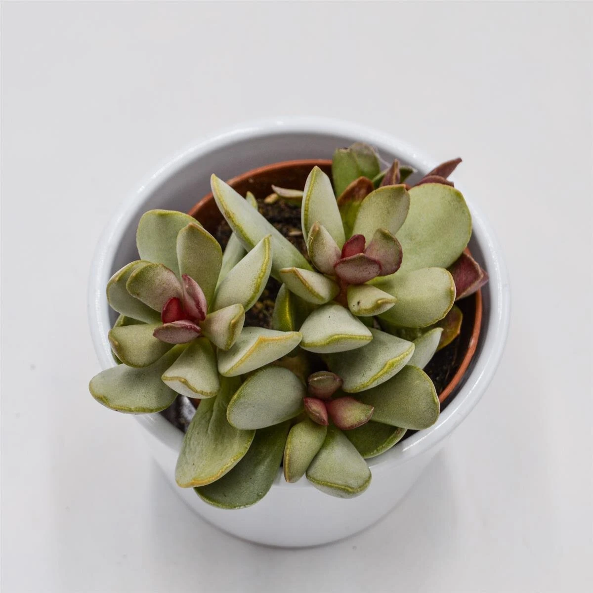 Adromischus cristatus ist grün. Die Blüte ist weiß bis grün, röhrenförmig und in Trauben angeordnet. Du erhältst eine Pflanze der Topfgröße 8,5cm, mit Wuchshöhe von etwa 6cm. Die erreichbare Wuchshöhe liegt bei 10cm bis 15cm.