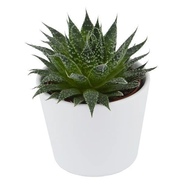 Aloe aristata ist grün und hat die Wuchsform einer Rosette. Du erhältst eine Pflanze der Topfgröße 5,5cm, mit Gesamthöhe von Topf und Pflanze von etwa 14cm. Die erreichbare Wuchshöhe liegt bei 15cm bis 20cm.