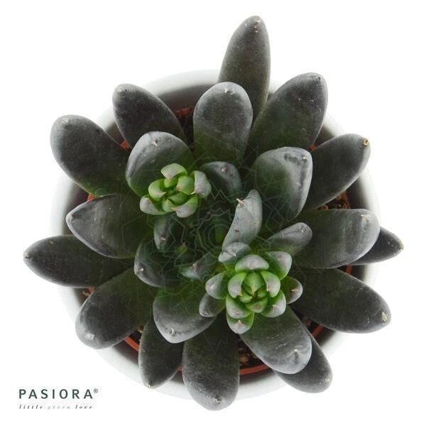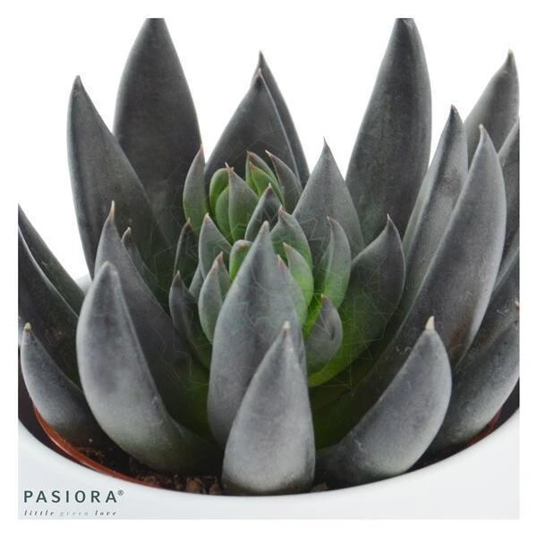 Beheimatet ist diese Sukkulente in Mexiko. Echeveriea affinis ist schwarz und grün mit einer rosettenförmigen Wuchsform. Die Blüte ist dunkelrosa und röhrenförmig. Sie bildet sich innerhalb der Blütezeit von März bis Mai. Du erhältst eine Pflanze der Topfgröße 6cm, mit Gesamthöhe von Topf und Pflanze von etwa 8cm. Die erreichbare Wuchshöhe liegt bei 20cm bis 25cm.