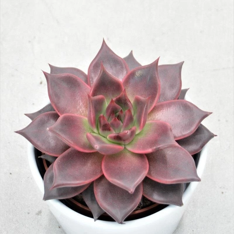 Echeveria ‘agavoides ‘Romeo’ ist dunkelrot mit einer rosettenförmigen Wuchsform. Die Blüte ist weiß. Sie bildet sich innerhalb der Blütezeit von März bis Mai. Du erhältst eine Pflanze der Topfgröße 10,5cm, mit Gesamthöhe von Topf und Pflanze von etwa 13cm. Die erreichbare Wuchshöhe der Pflanze an sich liegt bei 15 bis 20cm.