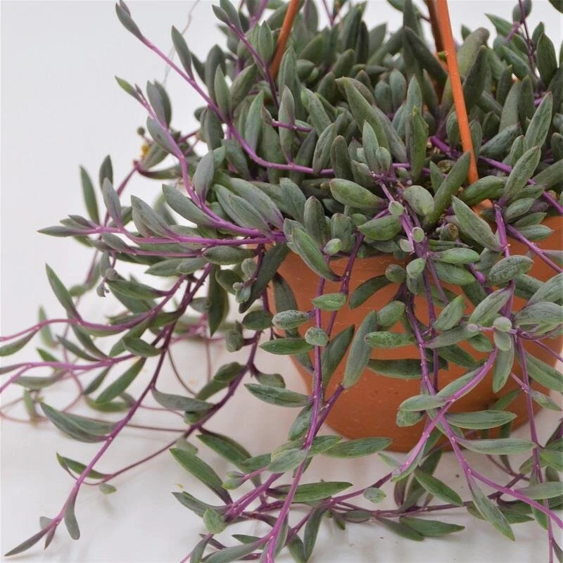 Othonna capensis ‘Ruby Necklace’ ist grün bis burgunderfarben mit Stängeln in einem kräftigen Lilaton und einer hängenden Wuchsform. Die Blüte ist gelb. Sie bildet sich innerhalb der ganzjährigen Blütezeit. Du erhältst eine Pflanze der Topfgröße 12cm, mit Gesamthöhe (hängend) von Topf und Pflanze von etwa 15cm (hängend).